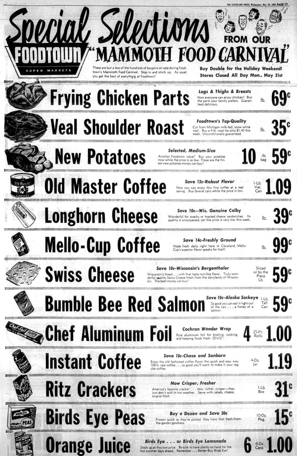 Here are some supermarket sales in Cleveland, Ohio, back in May 1954!
